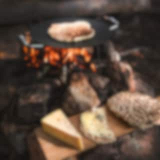 Når osten begynner å smelte er den klar til å spises. Ta noen kjeks ut, eller en baguette å spise sammen med osten og nyt en velsmakende matbit rundt bålet.