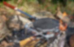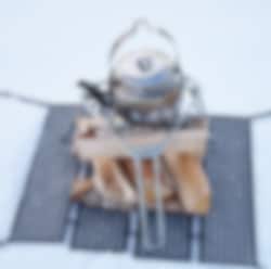 Et stabilt stativ for matlaging eller kaffebrygging over åpen ild. Ildstativet plasseres rett over bålet. På snø eller is kan stativet kombineres med vårt bålunderlag. Fungerer perfekt med både våre kaffekjeler, steke heller og panner. Fleksibel, stabil og sammenleggbar konstruksjon. Høyde 18 cm.