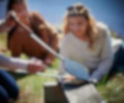 Vaffeljern i støpejern med fem hjerteformede vaffelbiter til bruk over åpen ild. Vafler over åpen ild er et nyttig triks for å få barn til å sette pris på friluftsliv. Fungerer også over grillen. Trehåndtak og skaftlengde ca 45 cm. Størrelse ca 18 × 18 cm.