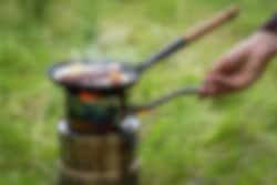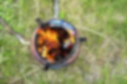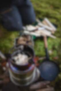 Smart og fleksibelt vedkjøkken som fyres med pinner eller liten ved. Med noen trepinner, kvister og mindre ved gir konstruksjonen en effektiv varme. Ikke behov for tennvæske eller gass. Liten opptenningskvist er stort sett overalt i landet. Fungerer perfekt på tur, men også som reservekjøkken dersom noe uforutsett skulle skje. Ovnen kjøles raskt ned og kan raskt pakkes ned i beskyttelsesposen etter bruk. Vekt 1,1 kg.