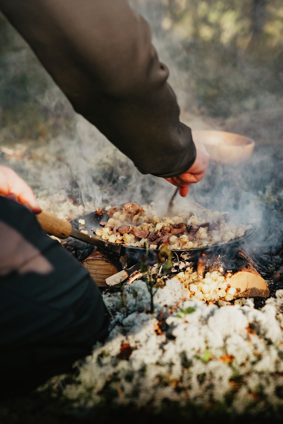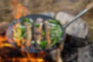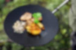 Vår stekepanne / bålpanne er et allsidig redskap som kan brukes over grillen eller gassbrenneren hjemme, men trives utmerket godt over åpen ild. Suveren til alt som normalt kan stekes eller varmes i stekepanne. Sammenleggbart trehåndtak gjør den perfekt å ta med ut i naturen. Koketoppen er laget av høykvalitets varmvalset stål og leveres fabrikkoljet. Diameter 28 cm, vekt ca 1,8 kg.