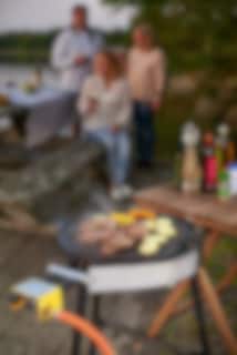 Gassbrenner 40 cm, passer til Hällmark steke helle 58 cm, 78 cm, Traktør steke helle og Grillplate. Gassbrennerne fra Hällmark finnes i tre størrelser - 30 cm, 40 cm og 60 cm. De varmes raskt opp og varmen er enkel å justere. Tunge kjeler er ikke et problem da brennerne er laget av materialer av høy kvalitet og de har solide, sterke ben. Vekt: ca 6,5 kg, Effekt: 11,4 kW.