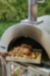 Ta pizzabaking til et helt nytt nivå på utekjøkkenet. Hällmarks pizzaovn har en pizzastein i bunnen som gir den fantastiske autentiske steinovnsbakte kvaliteten på det du lager. Ovnen fyres enkelt med LPG, eller med ved på autentisk italiensk vis om du ønsker det. Ovnen er laget av rustfritt stål og er montert på en praktisk vogn med låsbare hjul for enkel bevegelse. Pakken inneholder også redskaper, som pizzaspade, børste til stekeovn, pizzakutter, skrape, og kroker til redskapene slik at du kan henge dem pent og lett tilgjengelig ved siden av vognen. Ovnen er utstyrt med termostat slik at du enkelt kan holde styr på temperaturen. Askebeger under for enkel tømming. Både ovnsdøren og skorsteinen har solide håndtak. Mulighetene med Hällmarks pizzaovn er uendelige: Stek små eller store pizzaer, brun et kjøttstykke, stek grønnsaker eller hvorfor ikke bake brødet. Stekeareal på 0,48 m² (64 cm x 75 cm). Fyringstid med ved er ca 20 minutter. Regulator for LPG er ikke inkludert.