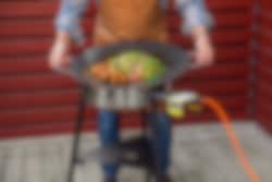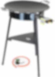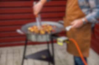 Et komplett sett slik at du raskt kan komme i gang med utendørs matlaging. Inneholder stekehelle, gassbrenner, avlastningsbord under hellen, vindskjerm til gassbrenneren og regulatorsett.