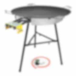 Dette er den perfekte størrelsen for de sosiale sammenkomstene. her kan du invitere til fest i hagen, langs vannet eller på campingplassen. Den 78 cm store steke hellen håndterer enkelt selskaper og sammenkomster på opptil 15 personer. Steke hellen kan brukes i kombinasjon med den medfølgende gassbrenneren på stativ, men også rett over åpen ild. Koketoppen er laget av høykvalitets varmvalset stål og leveres fabrikkoljet. Våre stilige håndtak, i forkrommet fjærstål, har hentet både inspirasjon og funksjon fra vakre og solide gamle vedovner og håndtakene holder seg kjøligere enn platetoppen. Hällmark of Sweden har sitt opphav og merkevare fra det svenske land og fjell, med dette følger også et ansvar om kvalitet og pålitelige produkter. Derfor tilbyr Hällmark livstidskvalitet på våre stekeheller. Gassbrenneren gir rask og trinnløs varme som enkelt justeres etter behov. Våre CE-merkede gassbrennere er testet av den uavhengige tyske organisasjonen TÜV, en av de sterkeste kvalitetsmerkene i verden, som garanterer en trygg og sikker bruk av produktene. Effekt: 21 kW. Tre avtakbare ben for matlaging over åpen ild er inkludert.