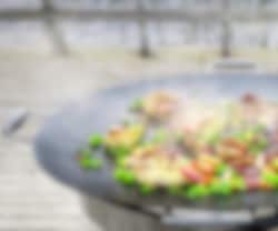 78-modellen håndterer uten problem et selskap på opptil 15 personer. Stkehellen kan brukes sammen med den medfølgende gassbrenneren på stativ, men også direkte over åpen ild. Den er laget av høykvalitets varmvalset stål og leveres med emaljert overflate, klar til matlaging. Våre stilrene håndtak i kromatisert fjærstål har hentet både inspirasjon og funksjon fra vakre og solide gamle vedovner – håndtakene holder seg kjøligere enn selve stekehellen.