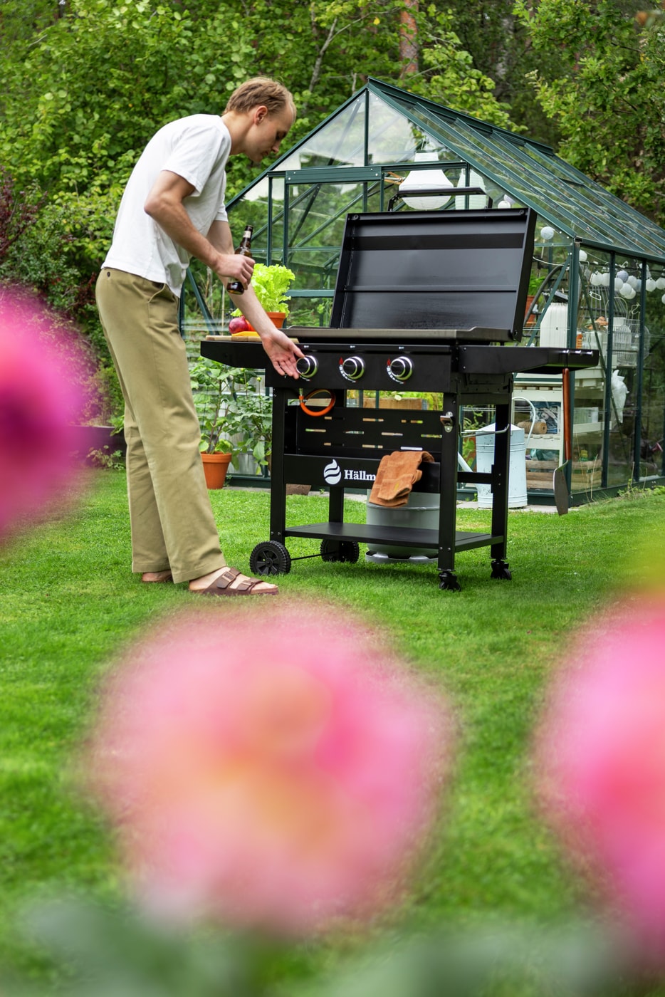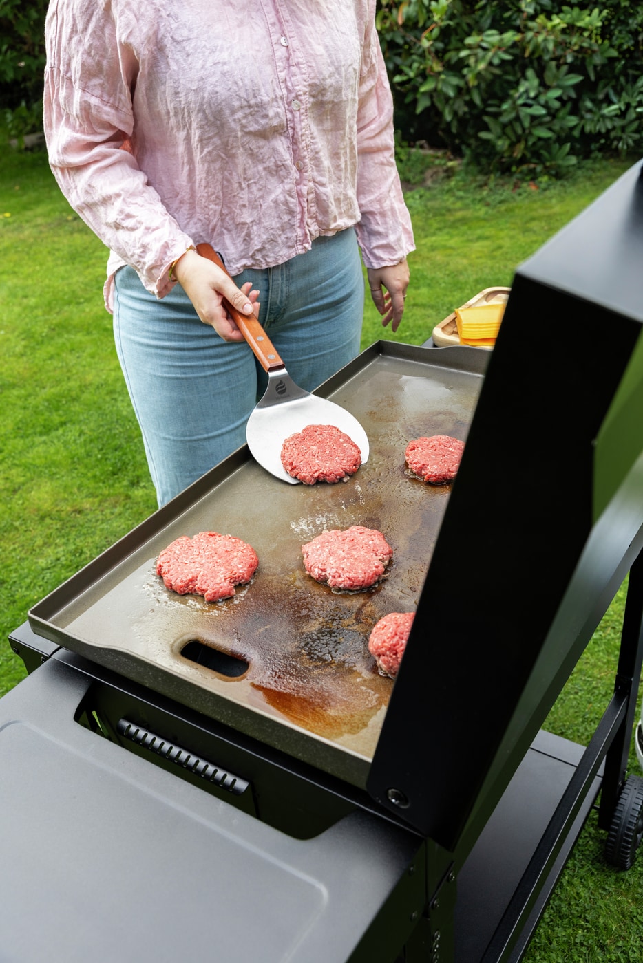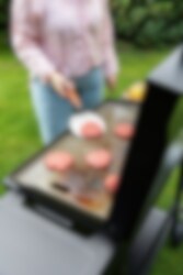 Med vårt stekebord 4B (4 brennere) får du en ekstra generøs stekeflate og enda mer fleksibilitet. Med et stekebord kontrollerer du tilberedningen på samme måte og med de samme fordelene som i en stekepanne, men med uendelig mye større plass og flere individuelle varmesoner – hamburgerne dine blir garantert saftigere enn på grillen! I stedet for å stå i stekos ved komfyren innendørs, kan du lage mat ute i det fri – det er Hällmark!