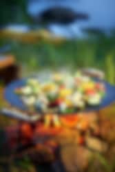En stekehelle for den intime gruppen eller familien, passer fint for 1-4 personer. En fleksibel modell som er enkel å ta med ut i skogen, i båten eller i bobilen. Stekehellen kan brukes i kombinasjon med den medfølgende gassbrenneren på stativ, men også på en grill eller rett over åpen ild. Stekehellen er laget av høykvalitets varmvalset stål og leveres fabrikkoljet.