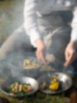 Bruk rå salsiccia pølser og ta ut deigen. Det gjør matlagingen ute veldig enkel og smaksrik.